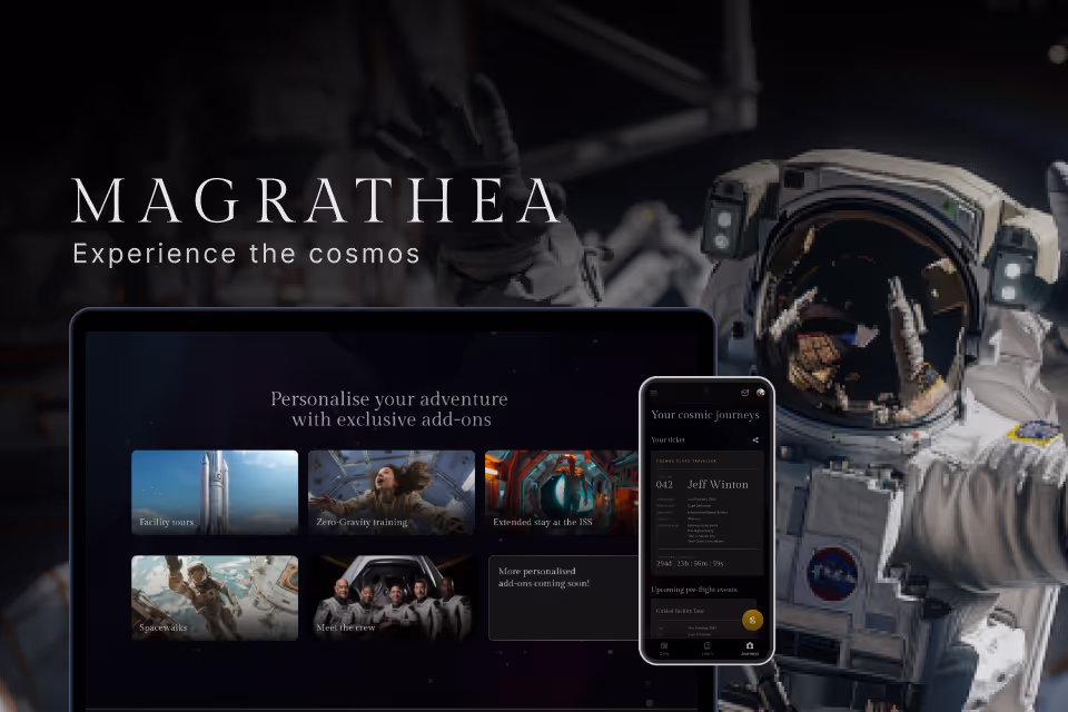 Magrathea was created for a design challenge, envisioning the booking experience for luxury space travel. It includes a website and mobile application for high-flying individuals eager to explore the cosmos.