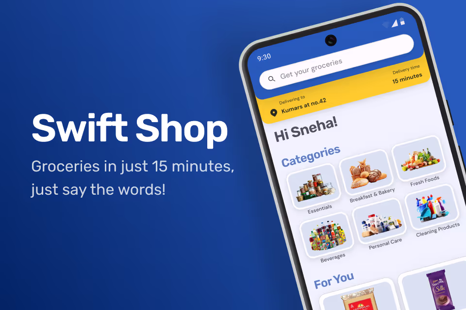 Aurora Cart was created for a design challenge, envisioning a voice-assisted grocery shopping experience with 15-minute deliveries in Indian cities. The solution is built as a mobile application.