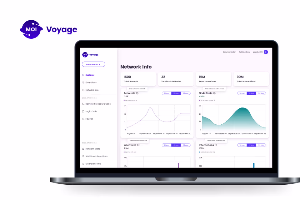 Voyage is the default block explorer for the MOI blockchain, serving as a validator dashboard and enabling GUI-based deployment of on-chain logic for asset creation, transfers, and more.